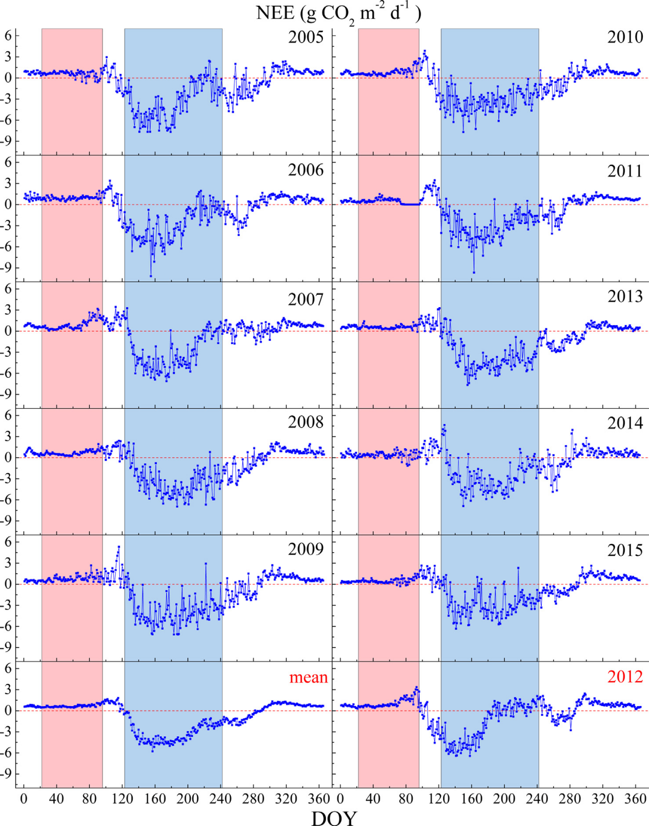 近年来,高温、干旱、灾害性降水等极端气候事件频发,显著地改变了全球尤其是北半球地区陆地生态系统的结构特征与服务功能。植物物候是陆地生物圈对气候变化响应最为敏感的指标之一。与此同时,净生态系统碳交换通量是生态系统固碳能力的重要指标,因此定量评估气候异常对植被物候和固碳能力的影响意义重大。同时,水分利用效率用来表征单位质量的水分消耗所固定的碳,更好地了解其动态和控制因素有助于预测生态系统对气候变化的响应。