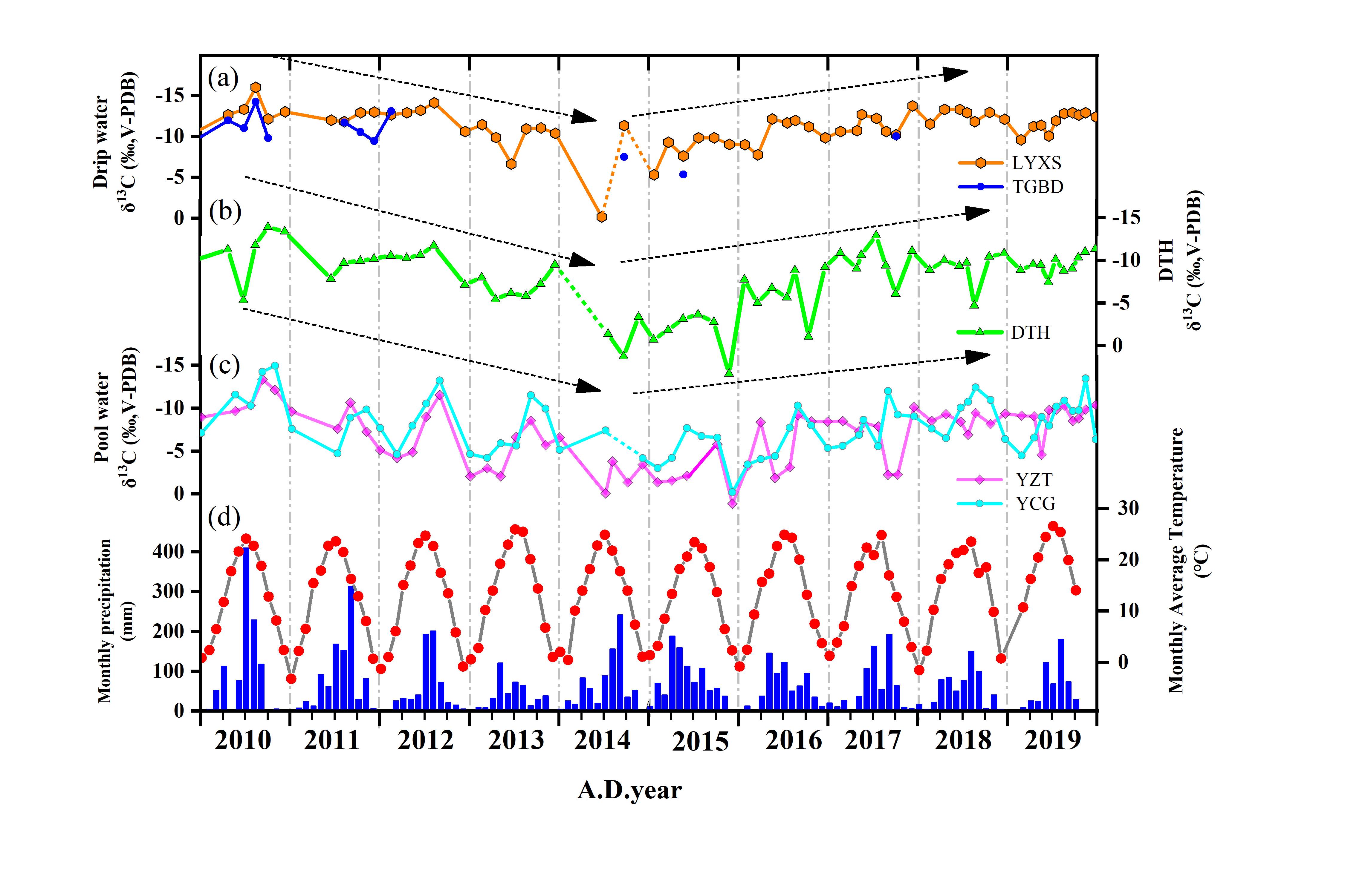 2020年12月11日,国际著名水文学期刊Journal of Hydrology (TOP期刊)在线发表了taptap点点、岩溶环境重庆市重点实验室杨琰教授所带领的研究小组的最新科研成果。洞穴监测可以厘清碳同位素信号在岩溶关键带中的传输过程,对揭示岩溶系统碳同位素的影响因素及其运移机制有重要意义。但是碳同位素影响因素复杂,需要通过多年监测以及近百年高分辨石笋记录来揭示不同尺度气候变化对δ13C记录的影响。