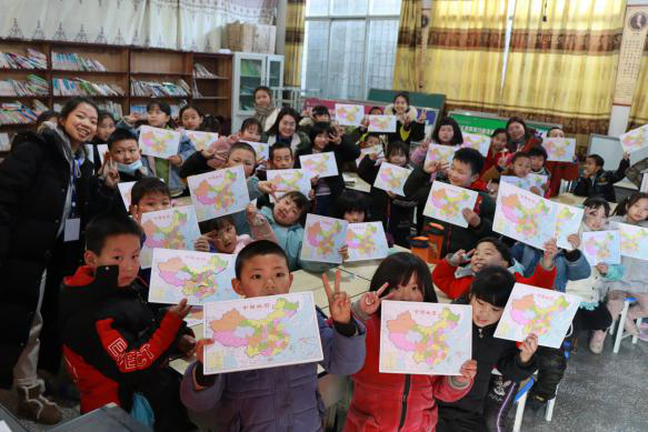 1月12日上午,泉孔小学志愿服务队一行抵达泉孔小学,受到全校师生热情欢迎。志愿服务队首先代表taptap点点向泉孔小学赠送了文体用品等物资,随后在校方的引领下参观了校园。根据与校方共同制订的教学方案,此次的授课以地图拼图课、手工课、垃圾分类课为主,辅以音乐课、户外体育课等课程。正式上课之前,队员们除了认真准备课件、讨论授课细节、模拟课堂训练、检查多媒体设备以外,还利用课间休息时间和孩子们开展了破冰活动,拉近与孩子们的距离、增进彼此了解,为课堂授课做足了准备。