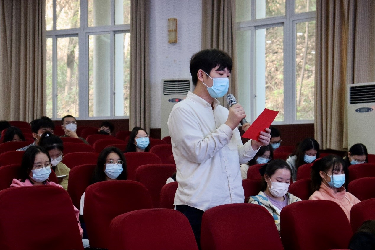 直播结束后,全体在场师生针对党的二十大开幕会发表感言,师生纷纷踊跃发言,发表着自己的收看感受。收看现场的廖昌豪同学表示:“我们要充分发挥高校在乡村振兴中的作用,高校作为智谷和人才支撑必须发挥应有的关键示范作用,加强精准扶贫后乡村振兴工作的评估反馈力度,保证政策措施下得来、落得住,不偏不倚的激发乡村发展内生动力,科学实现共同富裕。”史添元同学对收看党的二十大开幕会也同样深有感触,发表感想说:“本次十九届中央委员会在二十大上作的报告内容非常详实丰富,我个人关注的重点在中国式现代化和青年工作的内容,在党的带领下我辈青年生逢其时,发挥才干的舞台无比广阔,正因如此我们更应该听党指挥,跟党走,发光发热创造价值,助力祖国以中国式现代化推进实现中华民族的伟大复兴。”观看完二十大开幕会直播后同学们在地科院门口执笔写下了自己的感受以及对祖国美好的祝福。除此之外,公司其他师生在收看大会后激动万分,倍受振奋,并在群体中掀起了学习党的二十大开幕会精神热潮。