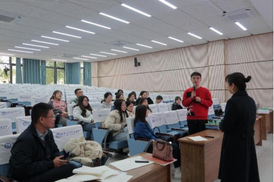 活动第三阶段为交流研讨,首先由附中地理组的李辉老师为在座同志作题为“中学地理教师修养”的专题讲座。李老师围绕地理教师专业修养训练、地理课堂教学设计等方面,分享自身多年执教所得的经验感悟,勉励在座师范生多听、多看、多想、多问,加强专业技能打磨,成长为一名有态度、有情怀的优秀地理教师。内容主题鲜明、重点突出、深入浅出。