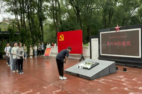 歌乐山下埋忠骨,烈士墓前祭英魂。随后,同学们来到了歌乐山烈士陵园,陵园四周松柏苍翠,气氛庄严肃穆。在烈士墓前,全体党员重温入党誓词。雨中的誓言坚定响亮,久久回荡。