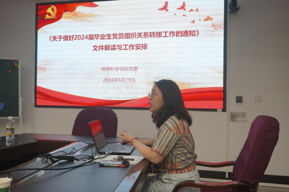 随后,专职组织员胡孜老师为毕业生党员开展组织关系转接专题培训,详细介绍了组织关系转接的重要性、工作流程、注意事项以及可能遇到的特殊情况处理方法,帮助毕业生党员们顺利、规范地完成组织关系的转接工作,确保他们能够在新的工作、学习单位中继续参加党的组织生活,保持与党组织的紧密联系。通过培训,毕业生党员们对组织关系转接工作有了更加清晰的认识和了解,为他们顺利步入社会、投身党的事业奠定了坚实的基础。